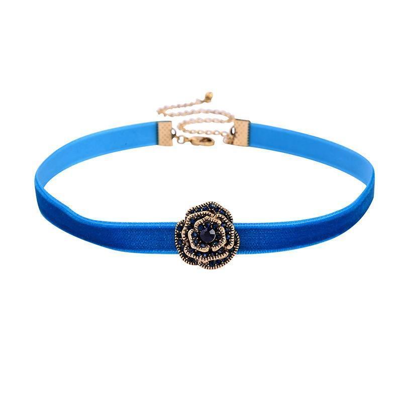 チョーカー ネックレス アクセサリー レディース ベロア ベルベット風 ラインストーン 花 女性 お・・・