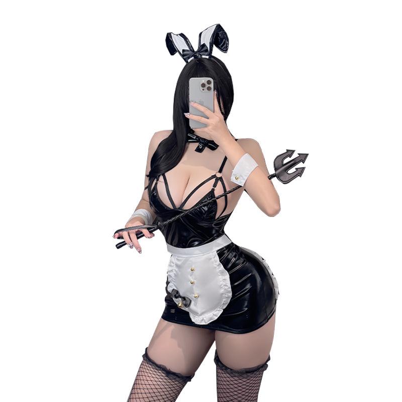 コスプレ セクシー ランジェリー ベロア バニーガール 穴あき 黒ストッキング エロかわ ルームウェ・・・