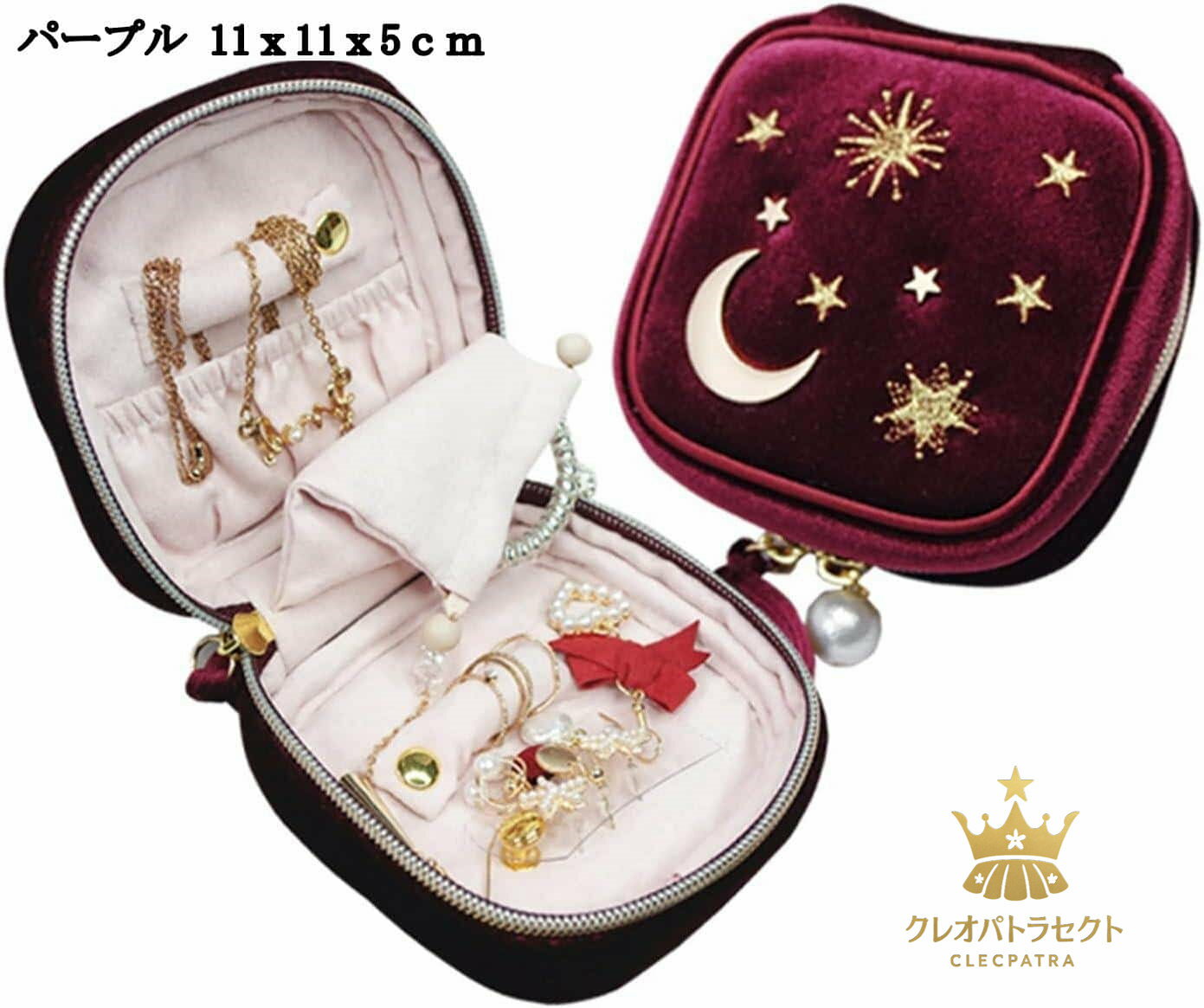 ミニダブルファスナー ジュエリー収納ケース ベロア調 レディース 小物入れ チョーカー 首飾り ピア・・・