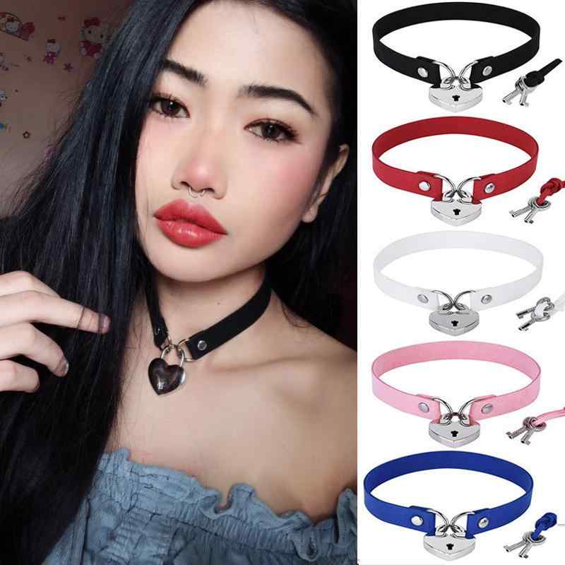 チョーカー レディース シンプル パンク風 ハート ロック 南京錠モチーフ ショート 鎖骨丈 クール・・・