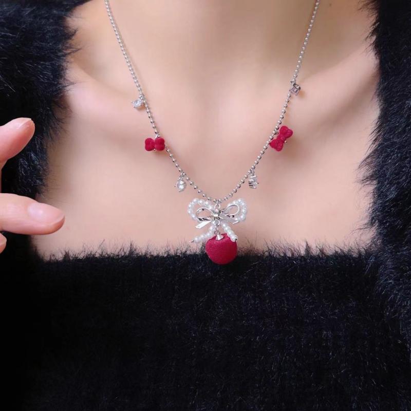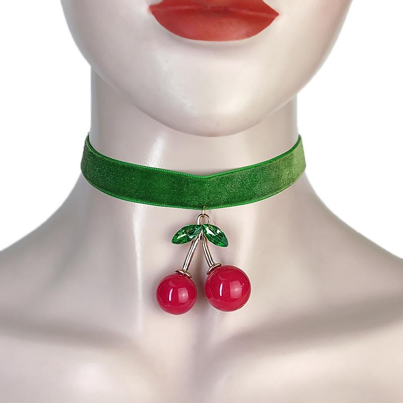 ネックレス レディース クリスマス レッド グリーン チェリー ベロア スネークチェーン チョーカー・・・