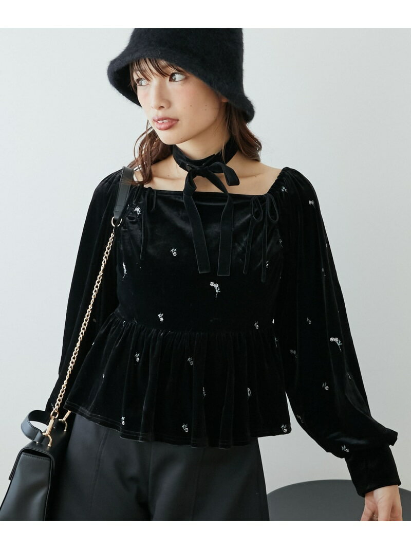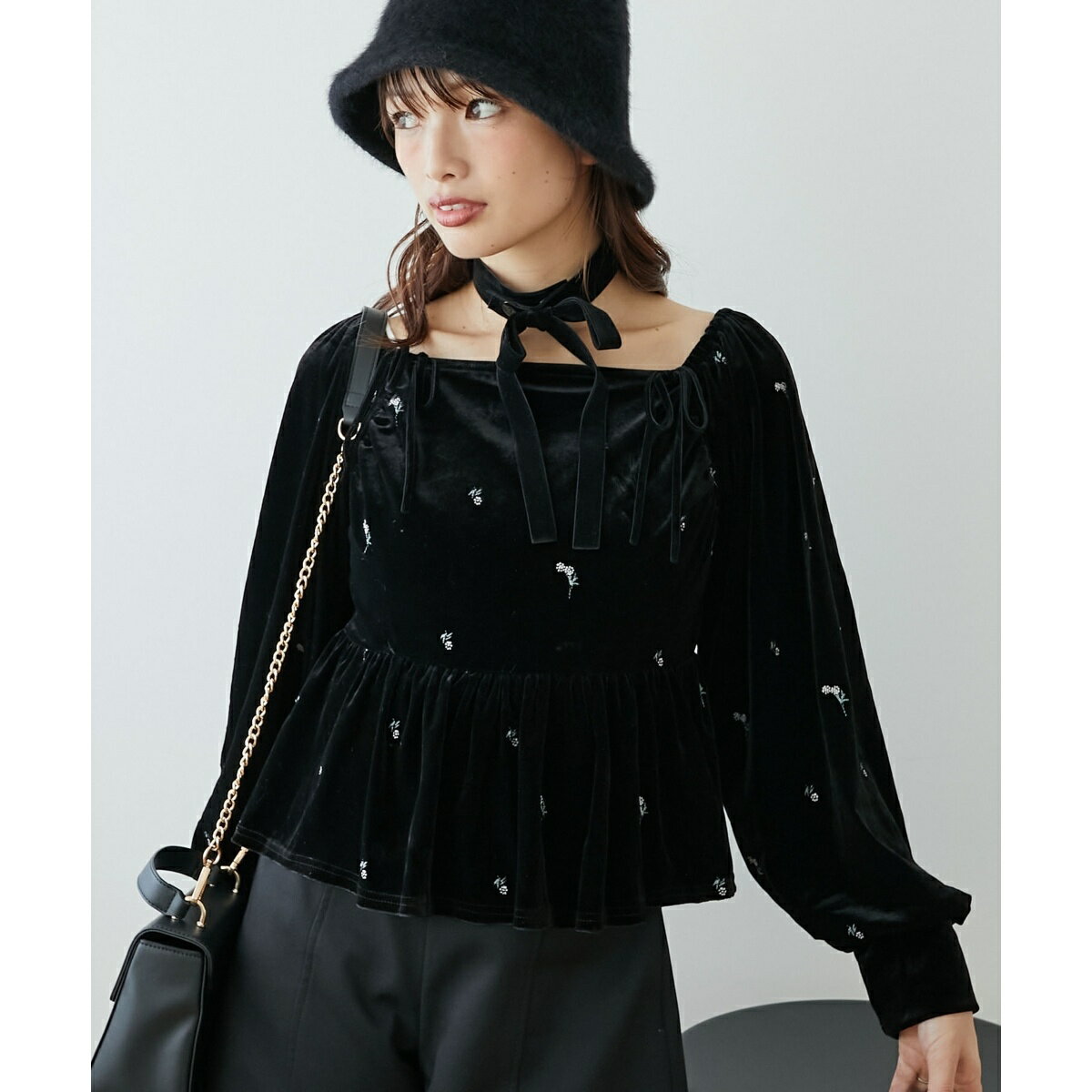 チョーカーセットフラワービジューベロアトップス/リエンダ(rienda)