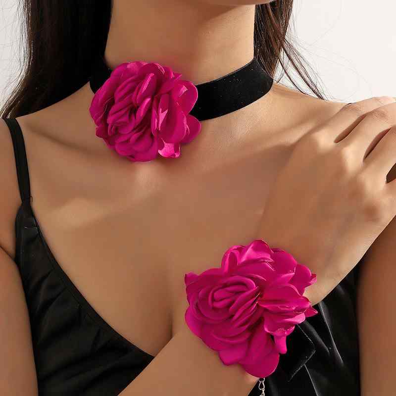 ネックレス レディース ファッション 2WAY リボンタイ バラモチーフ 手作り 布製 ベロア サテ・・・