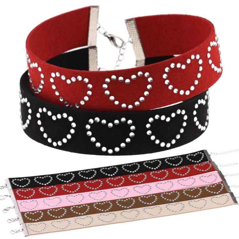 チョーカー レディース かわいい フェミニン 大ぶり ラインストーン ビジュー ハート型 ベロア ベ・・・