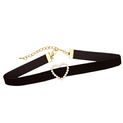 【送料無料】 パールハートのベロア風チョーカー (ブラック)SUNHOSEKI