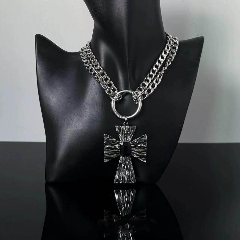 ネックレス レディース パンク ロック ストリート ヒップホップ ダブルレイヤー 十字架 サークル ・・・