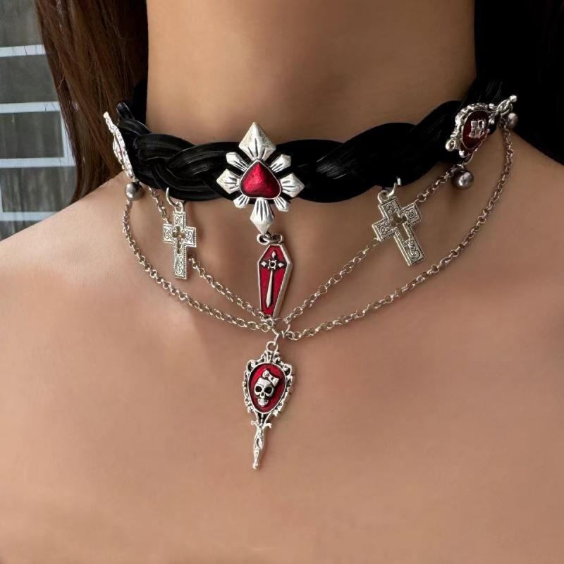 チョーカー ユニセックス ダーク系 クロス 十字架 パンク ゴシック ロック系 ストリート系 編み込・・・