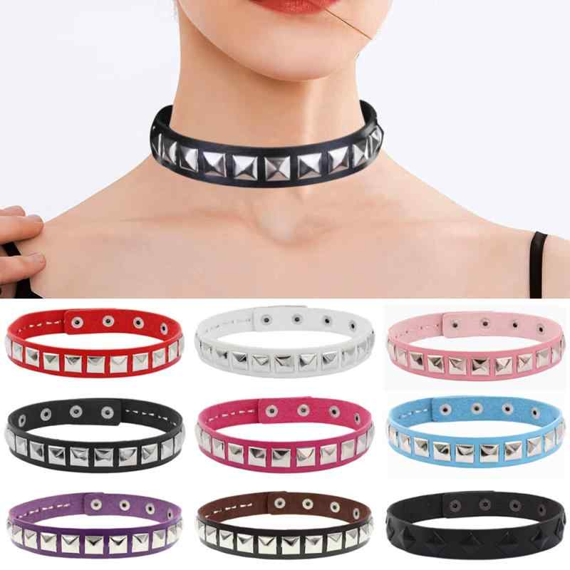 チョーカー ユニセックス パンク ゴシック ロック ストリート系 PUレザー 合成皮革 スクエアスタ・・・
