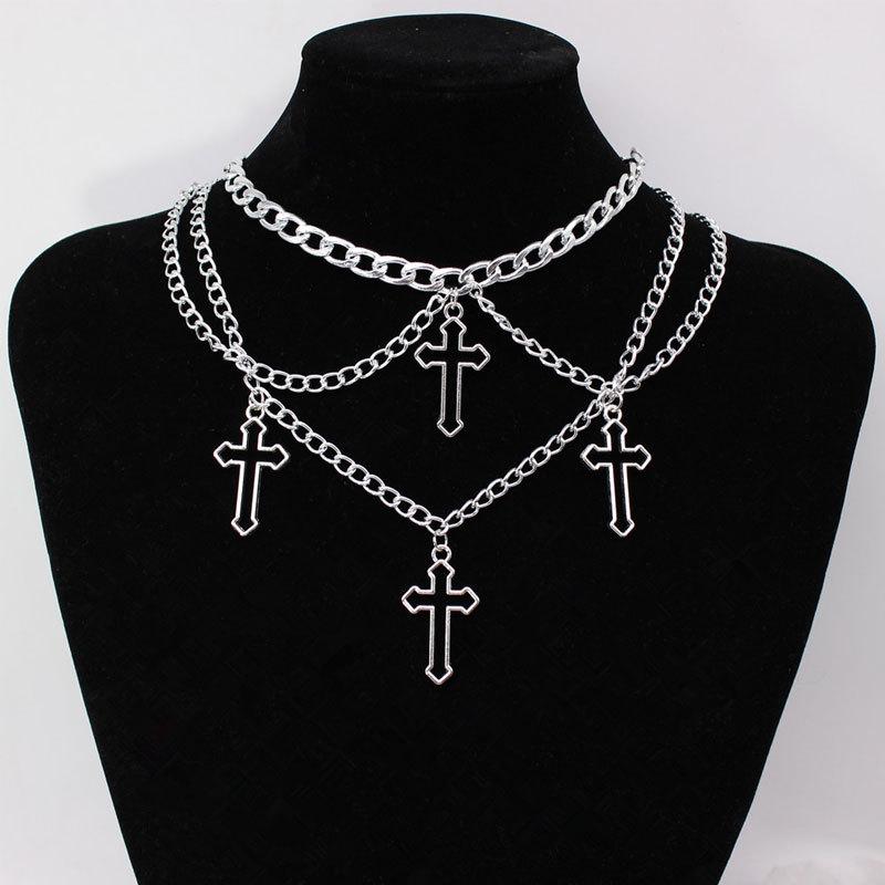 ネックレス レディース ゴシック 透かし彫り クロス 多層 重ね付け チョーカー 鎖骨ネックレス ヒ・・・
