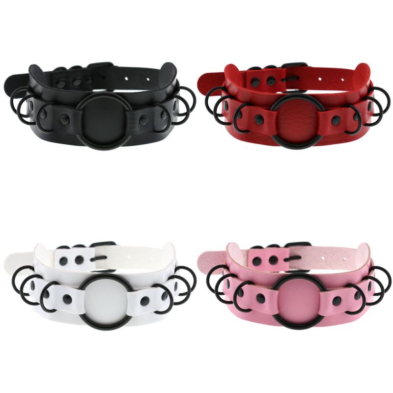 チョーカー レディース 多層 PUレザー ゴシック パンク ダーク系 Oリング 個性的 存在感 黒 ・・・