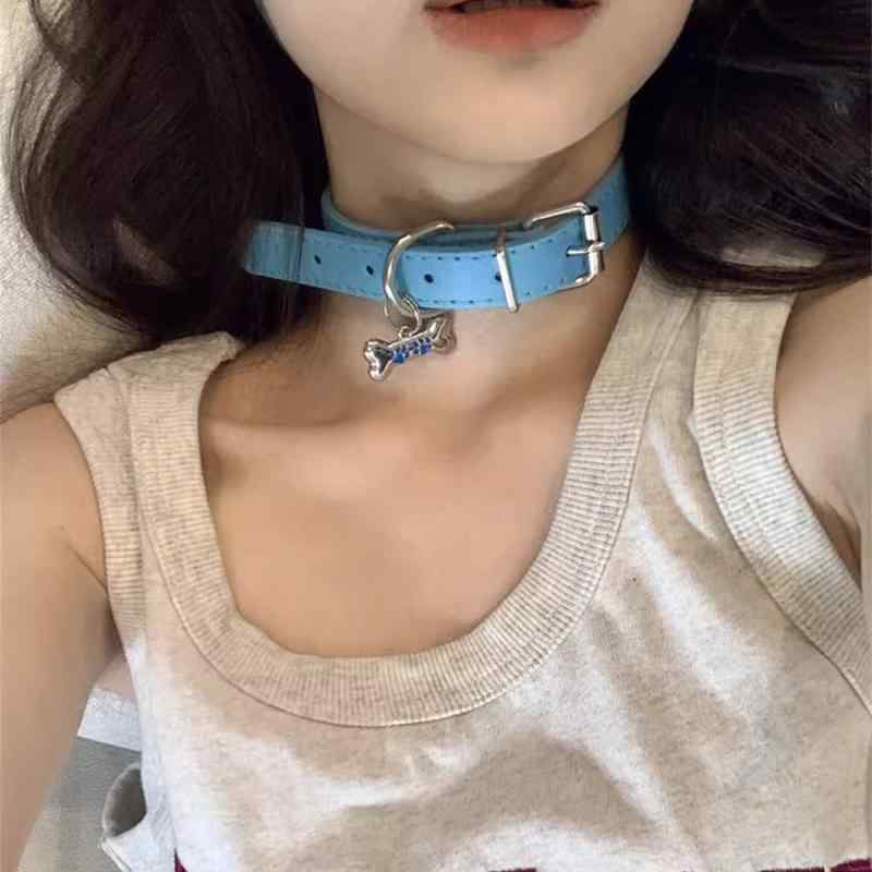 チョーカー レディース ブルー 骨モチーフ Y2K ギャル系 パンク ロック 甘辛ミックス クール ・・・