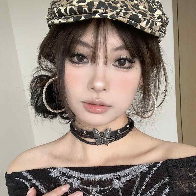 シンプル 短め カジュアル おしゃれ Y2K チョーカー ネックレス レディース ダーク バタフライ・・・