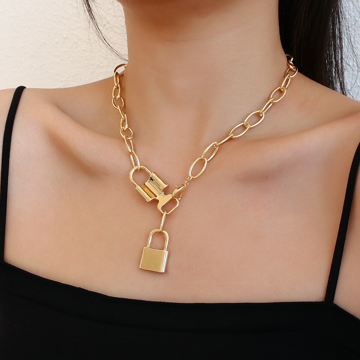 エコレザー 黒 チェーン ハートロック 南京錠 ネックレス ブラック チョーカー