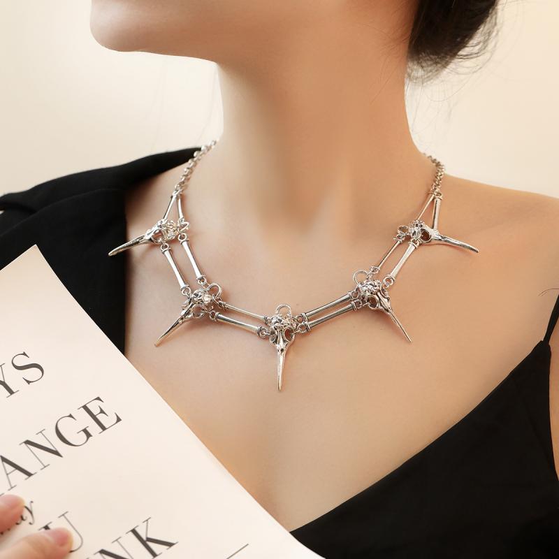 ネックレス レディース ゴシック 欧米風 鳥の頭蓋骨 スカル 烏 ダーク ペンダント チョーカー 鎖・・・