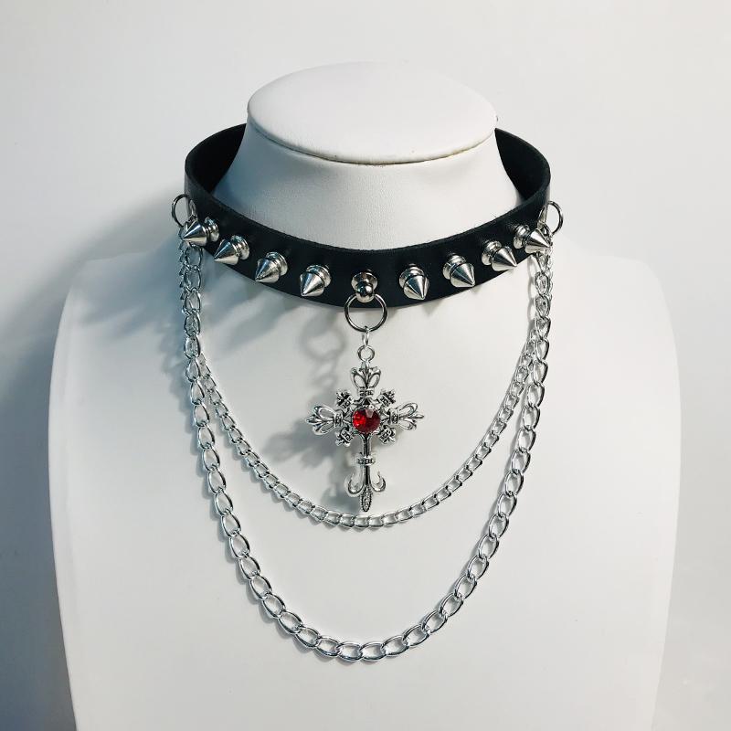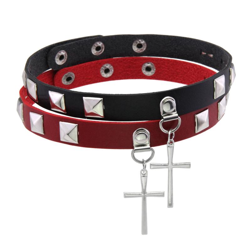 チョーカー ユニセックス PUレザー クロス スタッズ レトロ ダークゴシック 原宿系 パンク ロッ・・・