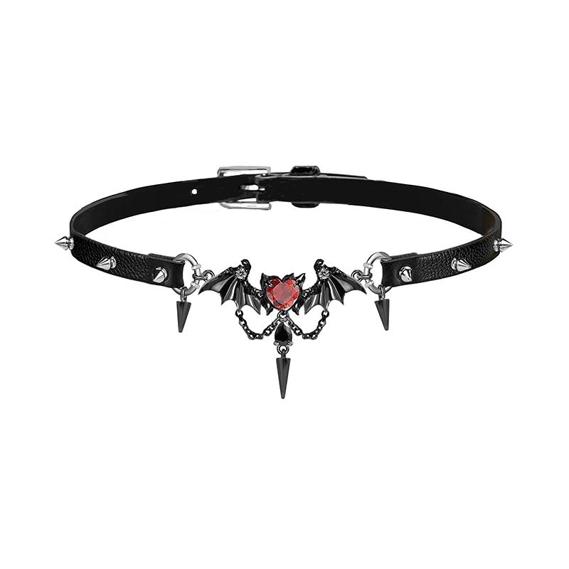 チョーカー パンク 暗黒 甘辛 悪魔 翼 レザー調 ハート ロック チェーン ショート ネックレス ・・・