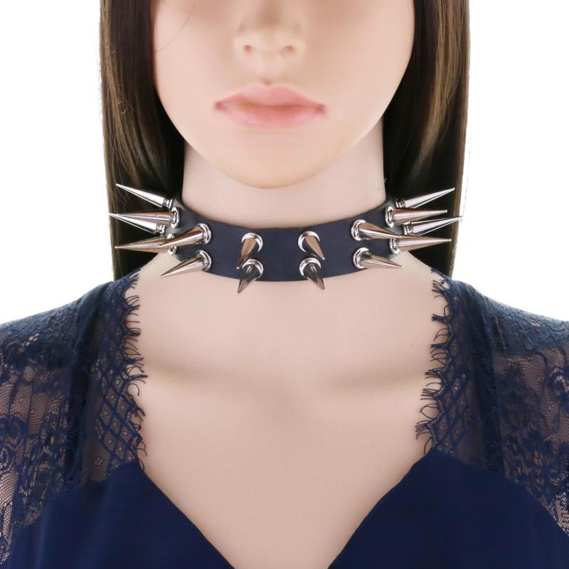 チョーカー 男女兼用 欧米 ゴシック パンク 2連 ロケット型 スパイクスタッズ レザー製 ロック ・・・