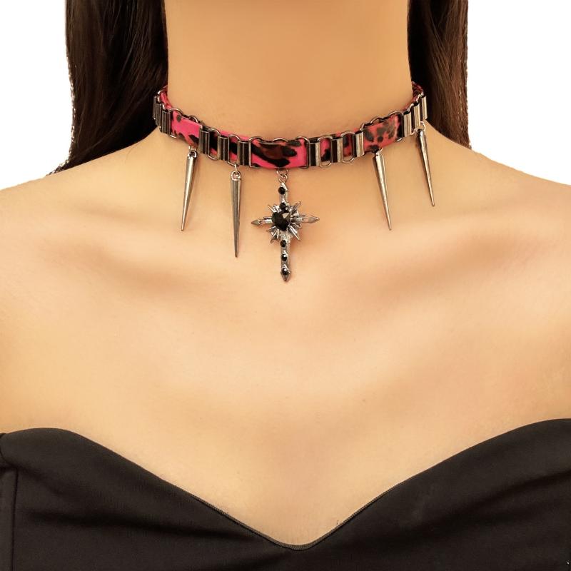 ネックレス レディース ゴシック レザー チョーカー 十字架モチーフ クール ロック系 パンク系 高・・・