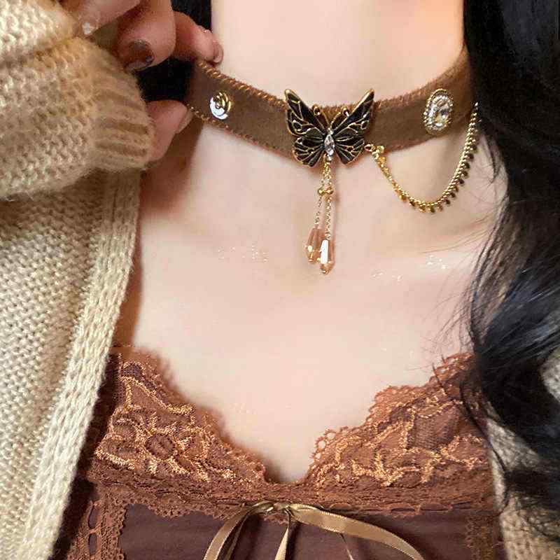 ネックレス チョーカー ペンダント レトロ 蝶 バタフライ ファー マイヤールカラー ブラウン系 Y・・・