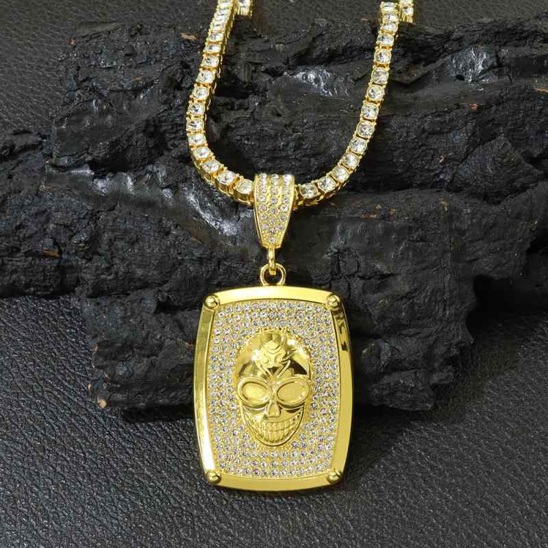 ネックレス 男女兼用 ユニセックス スカル ドクロ 丸プレート ペンダント キューバンチェーン ライ・・・