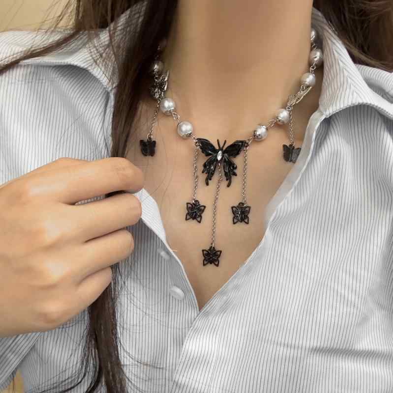 ネックレス レディース チョーカー ゴシック パンク ロックテイスト 蝶々 バタフライ フリンジ タ・・・