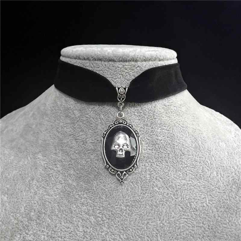 チョーカー レディース ブラックベルベット スカルモチーフ ゴシック ブリティッシュレトロ 合金製 ・・・