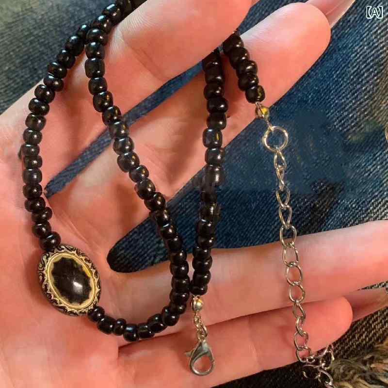 レトロ ヴィンテージ風 チョーカー バロック ブラックゴールド ビーズ ネックレス レディース 個性・・・