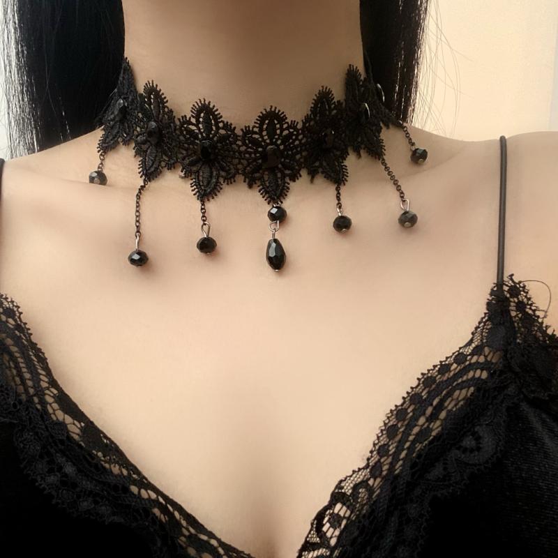 チョーカー レディース ゴシック パンク ロック レース タッセル 水滴モチーフ 辛口 甘め 個性的・・・