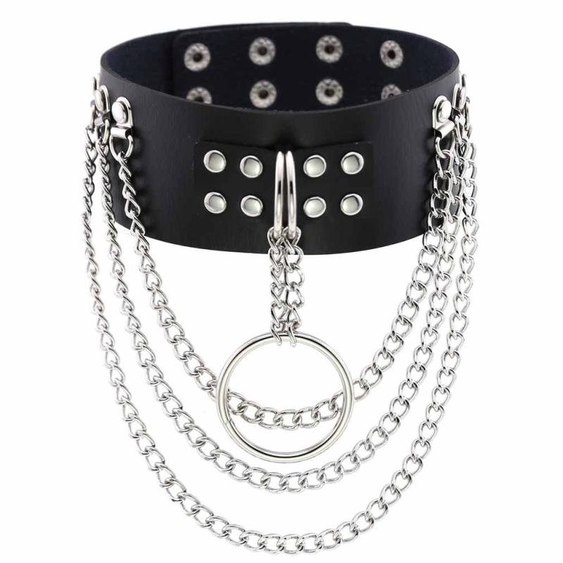 チョーカー ユニセックス パンク ボンテージ レザー Oリング チェーン ネックレス 首輪 欧米風 ・・・