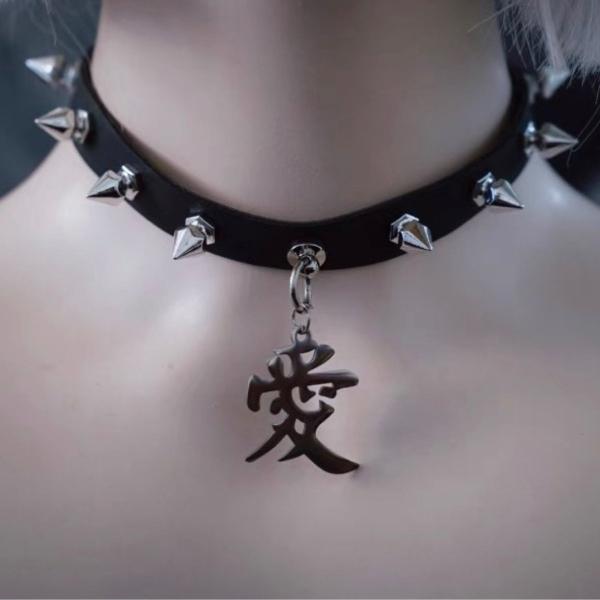 チョーカー スタッズ ネックレス アクセサリー おしゃれ 首輪 カジュアル ダーク ラブワード パン・・・