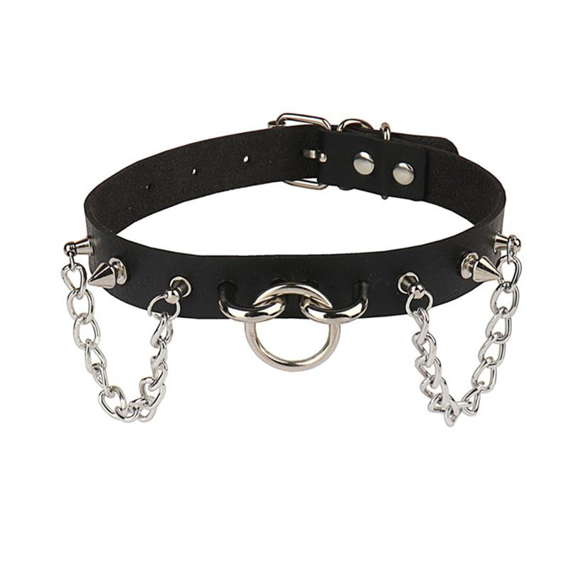 チョーカー レディース おしゃれ ゴシック風 パンク ロック メタル チェーン 丸型リング ダーク系・・・