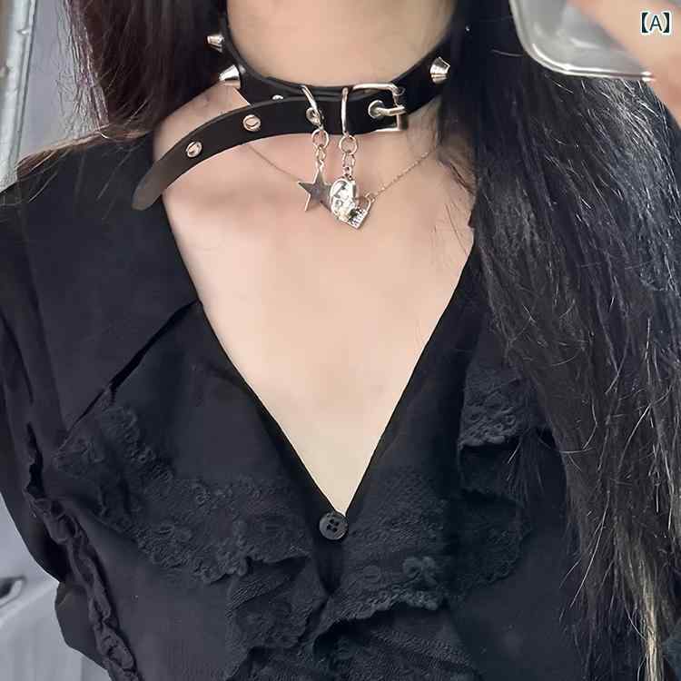 チョーカー レディース 原宿風 パンク ゴシック 個性的 スタッズ レザー 革 ネックレス 首飾り ・・・