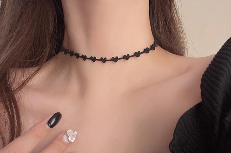 チョーカー 黒 並ぶ ハート ネックレス 可愛い フレンチ レトロ 首輪 ペンダント 韓国系 ダーク・・・