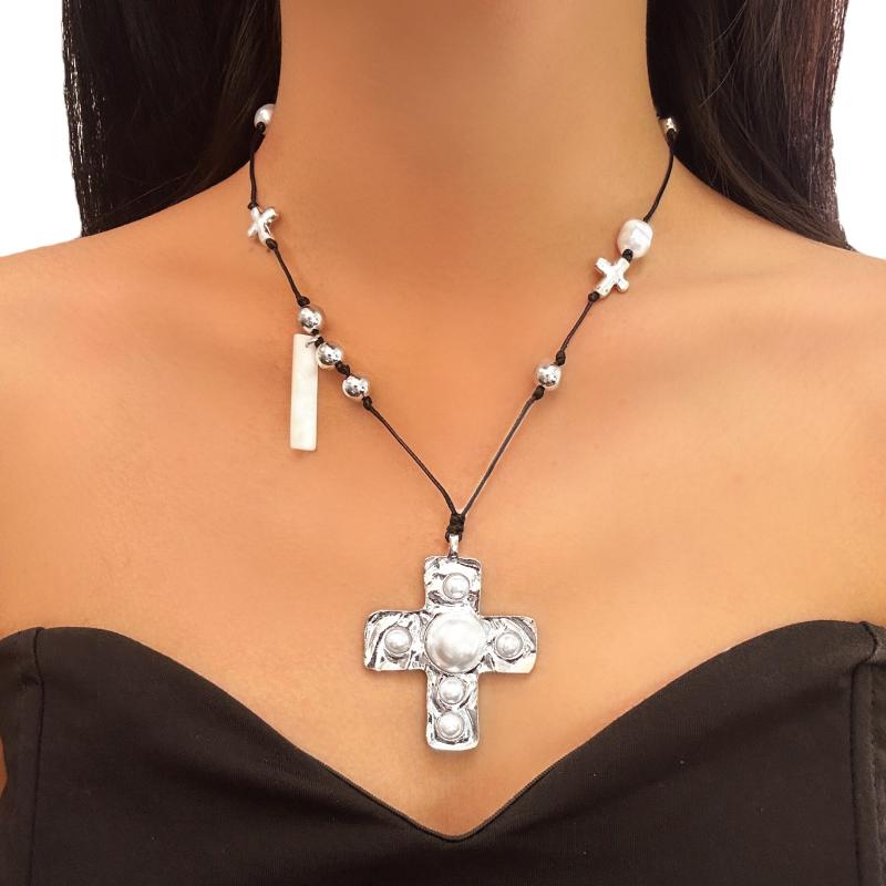 ネックレス レディース ダークスタイル パンク ゴシック ロック クール ビーズ 十字架モチーフ フ・・・
