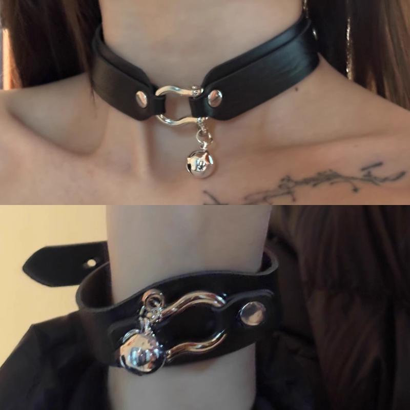 チョーカー レディース 女性用 パンク ロック ゴシック ダブルバックル 鈴付き レザー 合金製 個・・・