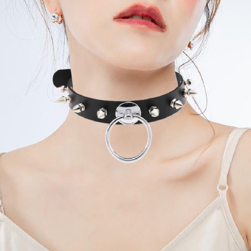 チョーカー レザー Oリング スタッズ スパイクスタッズ ゴシック パンク ロック V系 ストリート・・・
