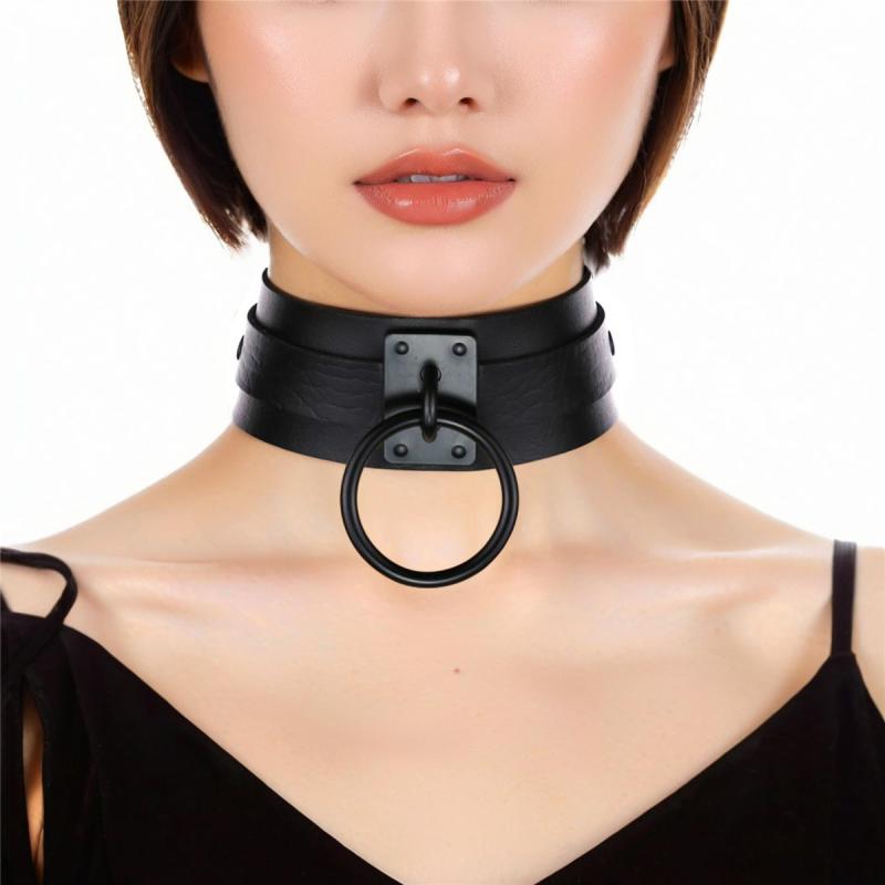チョーカー PUレザー 合皮 フェイクレザー ブラック 黒色 Oリング サークルリング 電気メッキ加・・・