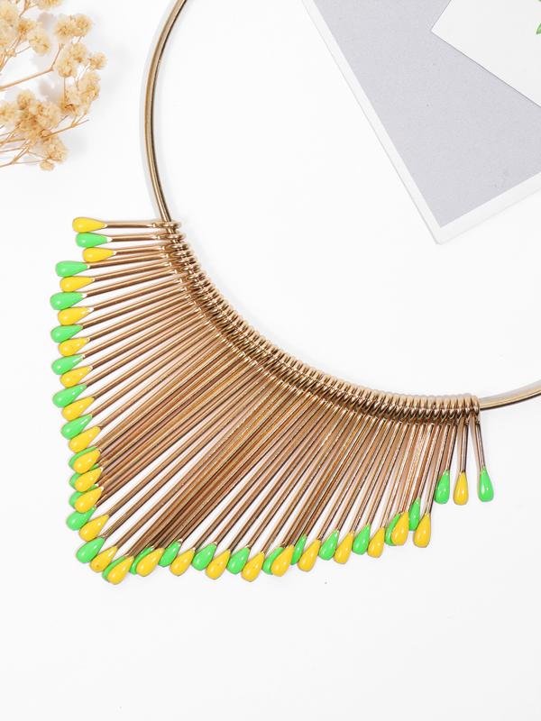 ネックレス レディース ロング レイヤード 扇形 メタル レジン チョーカー 鎖骨ネックレス フリン・・・