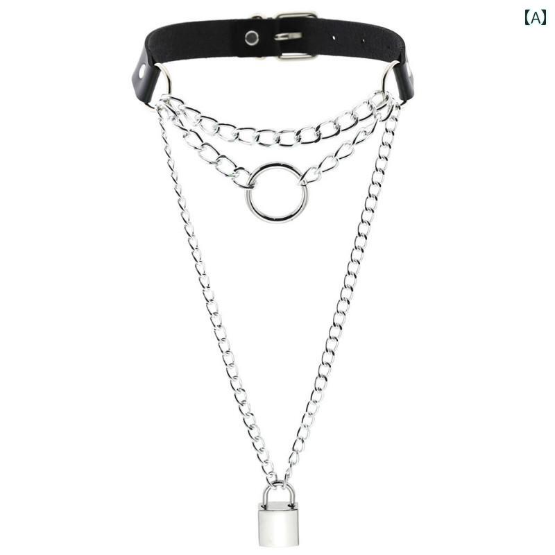 ネックレス レディース パンク ロック ゴシック 欧米 フェイクレザー チョーカー ネックレス ボデ・・・