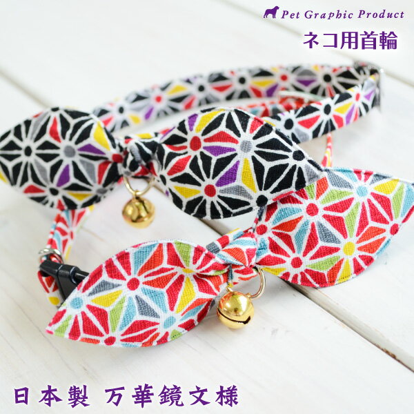 猫 首輪 日本製 万華鏡文様【鈴付き】猫 首輪 鈴 セーフティーバックル かわいい チャーム 付き ・・・