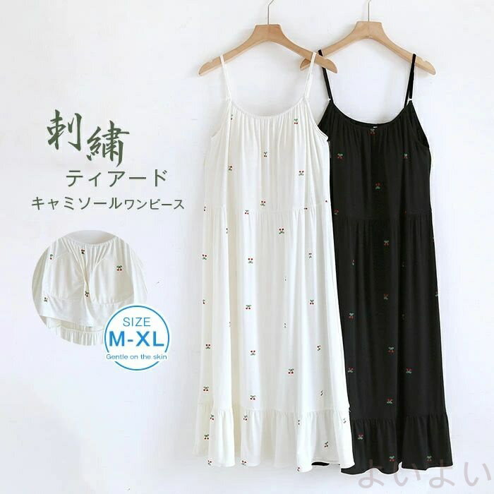 ルームウェア キャミソールワンピース カップ付き ティアード ギャザー 可愛い 大人 レディース 夏・・・