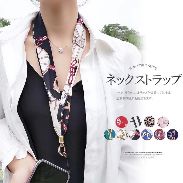 スマホ、デジカメ、鍵、パスケースなどに大活躍!選べる10柄 スカーフ調 ネックストラップ ショルダー・・・