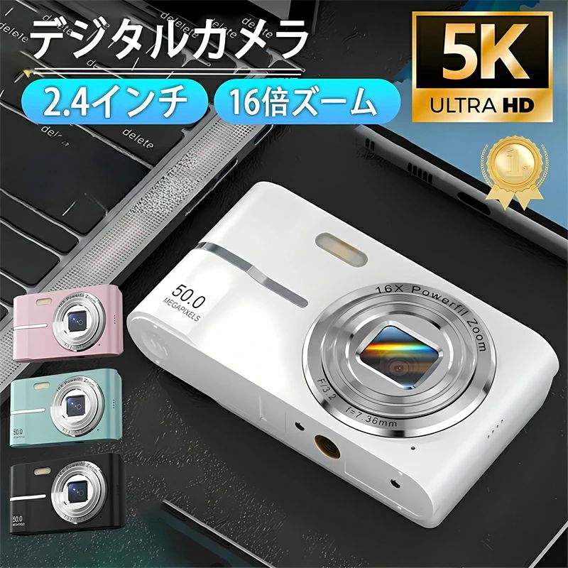 16倍 5k画質 5000万画素 撮影 動画 自撮り 軽量 高画質 小型 デジカメ カメラ ビデオカ・・・