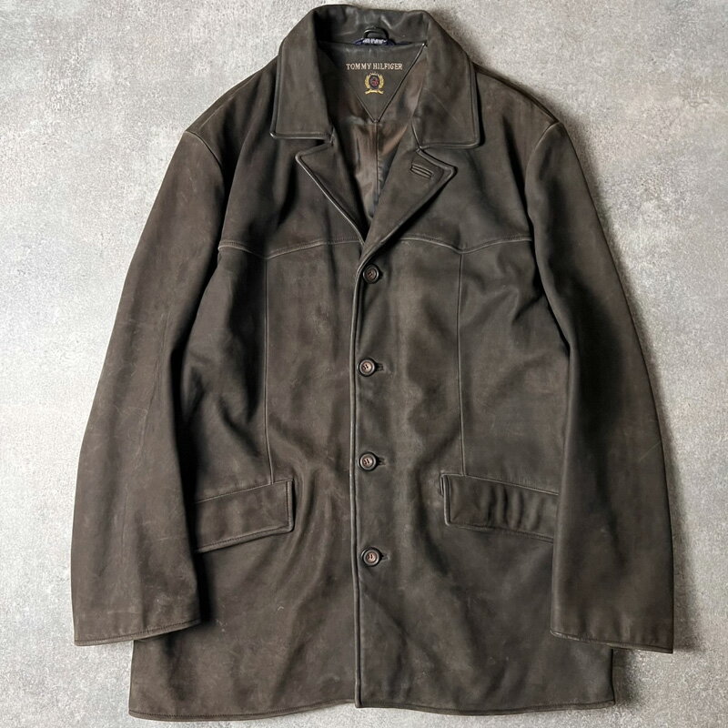 90s TOMMY HILFIGER ライナー付き 本革 ヌバック レザー カーコート L / 90・・・