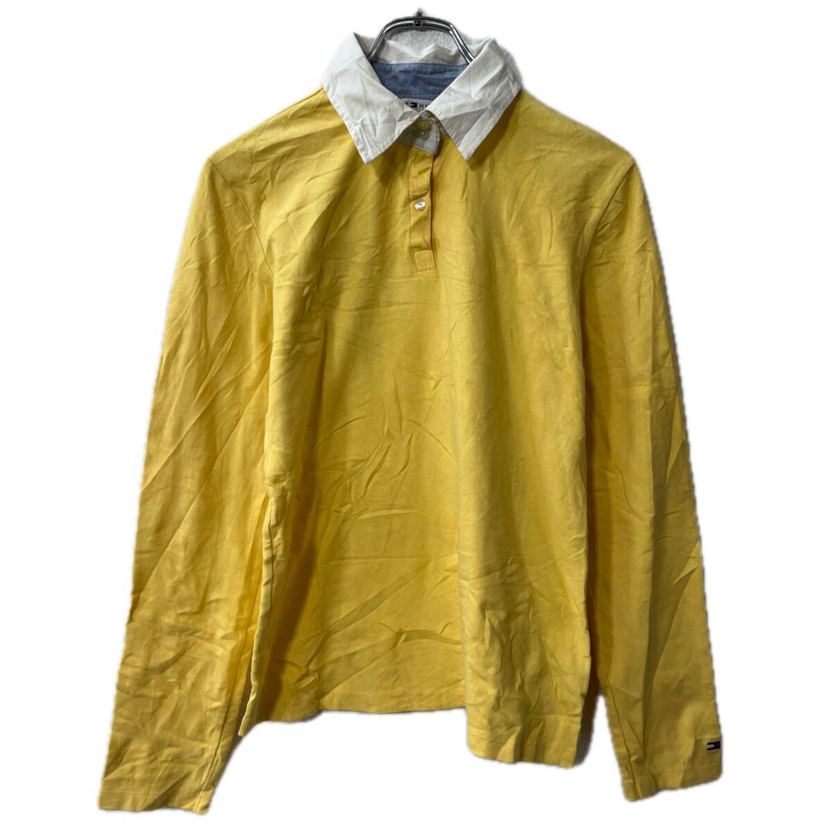 【中古】【古着】 TOMMY HILFIGER 長袖 無地ポロシャツ M イエロー ホワイト トミー・・・