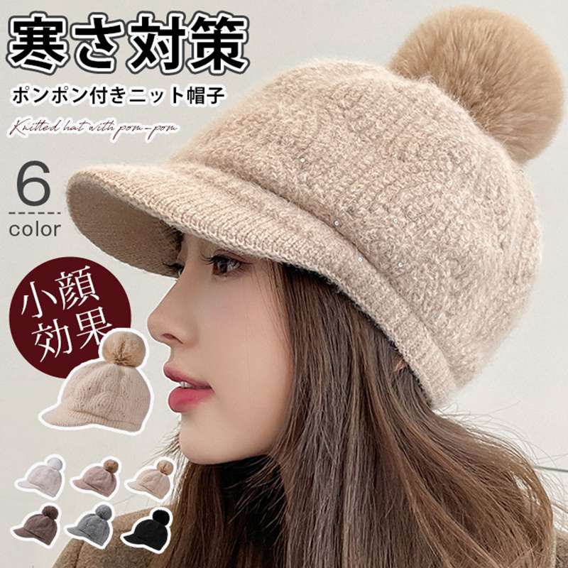 秋冬 ニット帽 ニットキャップ レディース 耳当て 韓国 ボンボン ゴルフキャップ 帽子 つば付き ・・・