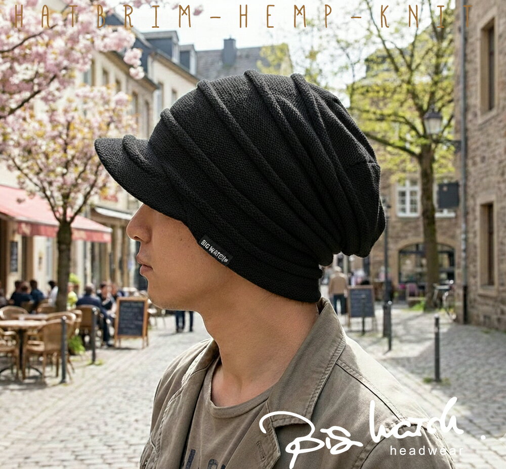 大きいサイズ メンズ 帽子 ニットキャップ つば付き ヘンプロール 黒 HMT-02 春 夏 秋 冬・・・
