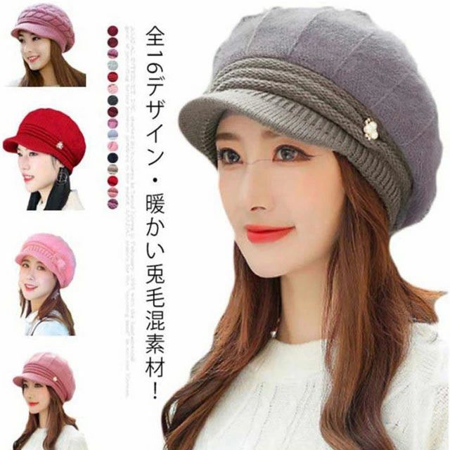 防寒 冬 つば付き帽子 キャスケット 兎毛混 ニットキャップ ニット ニットキャップ帽子 キャップ ・・・
