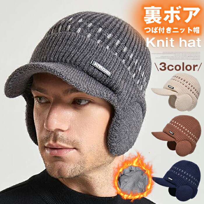 裏ボア つば付きニット帽 ニット帽 メンズ レディース 耳あて付き防寒帽 高齢者70代 帽子 厚手ニ・・・
