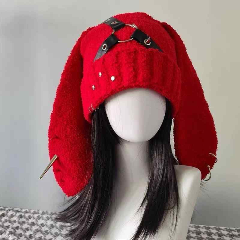 ニット帽 レディース y2k 個性的 サブカル系 スタッズ レザーバックル 防寒 保温 耳当て うさ・・・